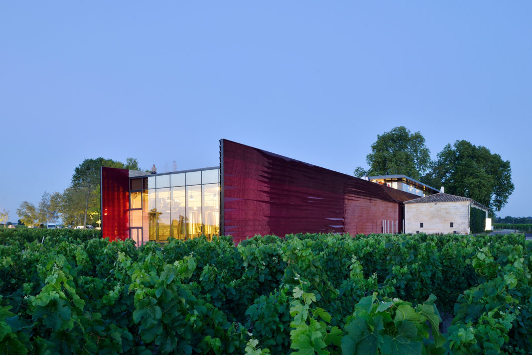 The bright red, wine colored walls double as a work of art that reflects the vineyard and terror of Chateau La Dominique. The bright, wine colored building can be seen from quite a distance, which has caused some issues with some of their neighbors.