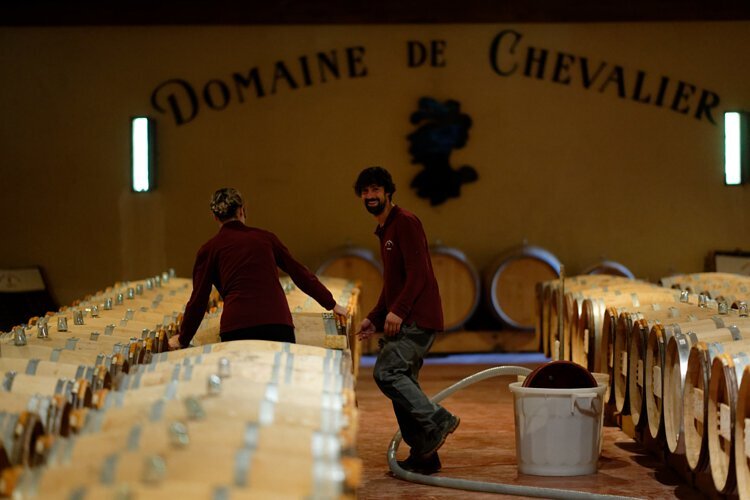 In Chevalier's winemaking philosophy, the mission of winemaking is to faithfully reflect the characteristics of the terroir. The winery respects the differences between vintages and adjusts vineyard and cellar management accordingly. The winery is equipped with small fermentation tanks, allowing for separate vinification of fruit from different plots. For red wines, pre-fermentation typically involves a 4-6-day cold maceration to enhance the fruit's aromas. During fermentation, the wines are manually capped to soften the extraction process. The Grand Vin is aged for 14-24 months in oak barrels, with a ratio of 40% to 60% new. For the white wines, the grapes are harvested and transferred to a bladder press, where they are gently pressed by plot. After fermentation, the wines are aged on their lees to enhance their fullness, richness, smoothness, and complexity.