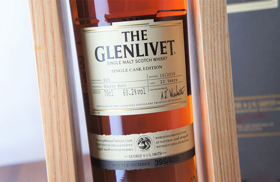 Glenlivet 22 year old Single Cask Edition Cask No.825 single malt was matured in the highly valuable Sherry Butt cask, without any addition of water or mixing. It was bottled in 2018 at a strength of 60.2% of its original bucket. Preserve the most distinctive and original flavor, present Glenlivet’s standard spirit perfectly, and increase its collectible value.