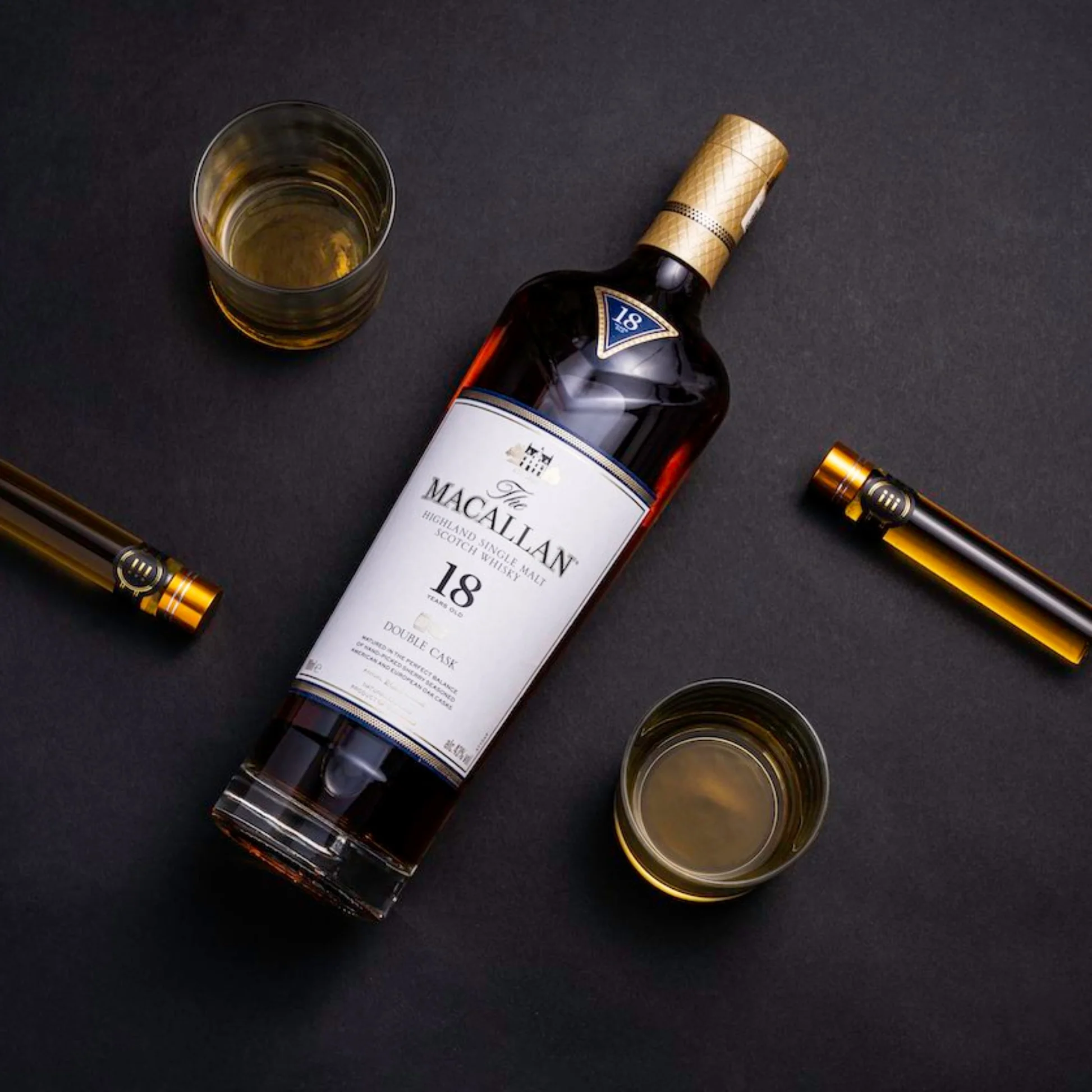 The Macallan Double Cask 18 Years Old, 2022Release, a perfectly balanced single malt whisky matured for 18 years inboth American and European sherry seasoned oak casks. Sherry seasoned Americanoak adds delicate vanilla to the subtle spice of European oak, delivering awhisky with a sweeter, warmer taste and character.