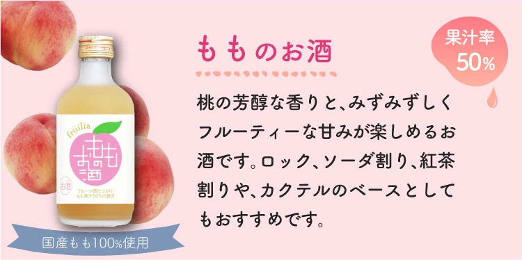 Fifty percent of the product is made of peach juice produced in Japan. You can feel the mellow and watery taste of the peach. Due to the high concentration of the juice, peach pulp will be deposited at the bottom, which will deepen the taste when you drink it. It is a very popular product. After opening, it has a strong aroma of dense peach, but also feels mild and full. The precipitated pulp brings out an interesting texture when tasting.