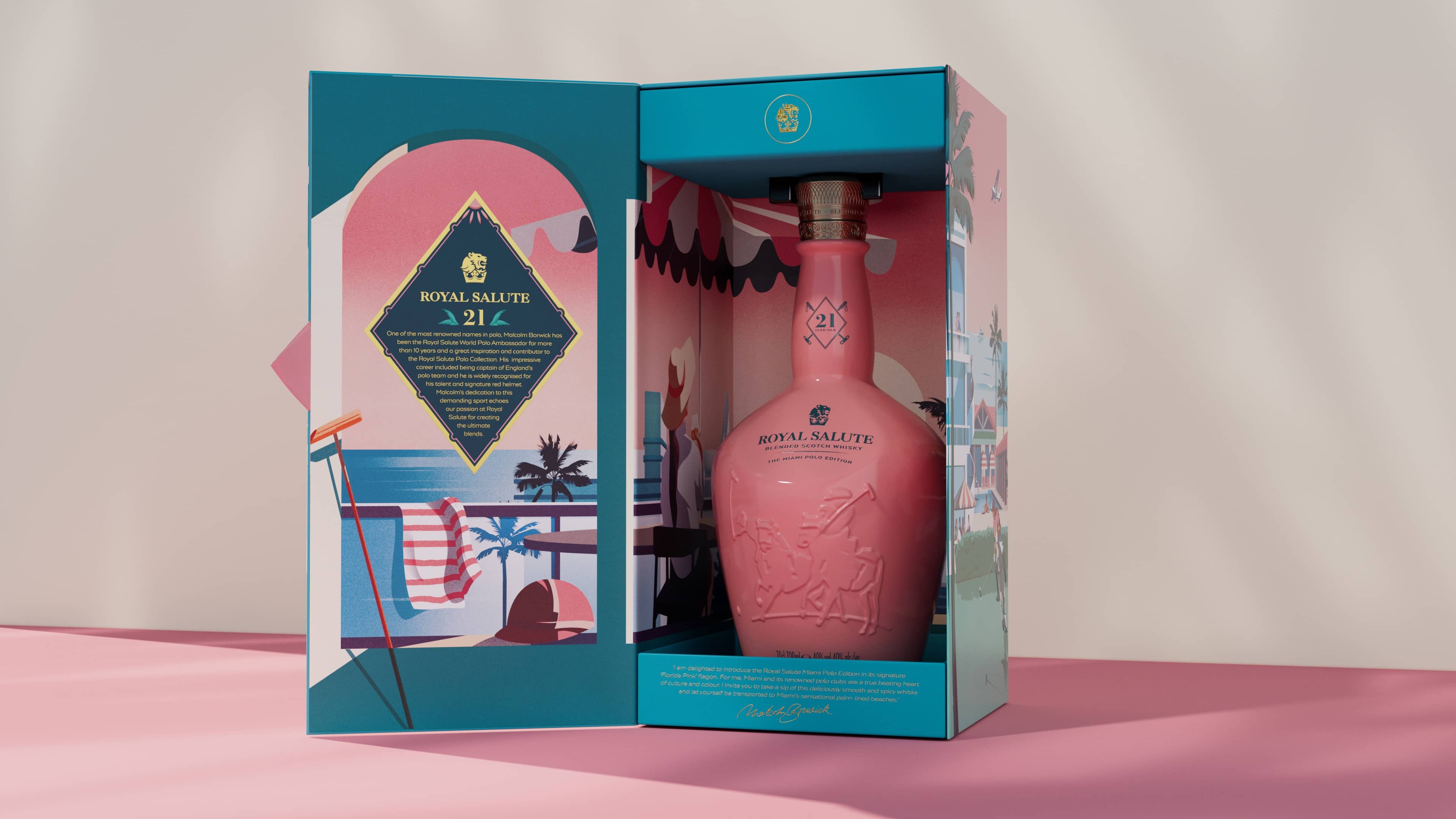 The sixth generation Miami limited edition of the Royal Salute Polo series is inspired by the charming city of Miami -Miami is home to some of the most famous polo clubs in the world. For more than 40 years, polo has brought people a luxurious experience rich in technology, honor and elegance in the city's unparalleled landscape and unique artistic architecture. It perfectly fits the atmosphere of this city, known as "Florida". "Pink" is the main color, which makes you feel like you are participating in polo in Miami.In order to pay tribute to this iconic city and the land of America, Royal Salute Chief Blender Sandy Hyslop has carefully created a 21-year-old Scotch blended whiskey with a unique American flavor, aged in two classic American whiskey oak barrels. Barrels - First fill bourbon barrels and first fill rye barrels are used to finish this whiskey. The bourbon barrel brings smooth vanilla and coconut aroma to the liquor, which is reminiscent of Miami's golden beaches. Combined with the fresh herbal and slightly spiced aroma given by the rye barrel, it is perfectly intertwined, paying tribute to the exciting and charming life aesthetics of Miami.