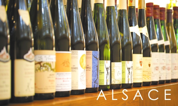 由於 Alsace 曾被德國統治, 故此在飲食文化上, 也深受德國影響, 除了葡萄品種外, 就連酒瓶的瓶身也同樣是瘦長, 不過 Alsace 多產不甜風格。 Alsace 葡萄酒常會以葡萄品種區分, 現有七種法定的釀酒葡萄, 分別是:Riesling、Gewurztraminer、Pinot Gris、Muscat、Sylvaner、Pinot Blanc和Pinot Noir。 當中較高檔的Alsace Grand Cru等級更被嚴格規定只能使用以上提及的首四種貴族葡萄釀酒(51個Grands Crus之中只有一個Grand Cru例外,容許使用Sylvaner)。除了紅酒和白酒外,也有以傳統方法釀造的汽泡酒(Crémant d’Alsace)