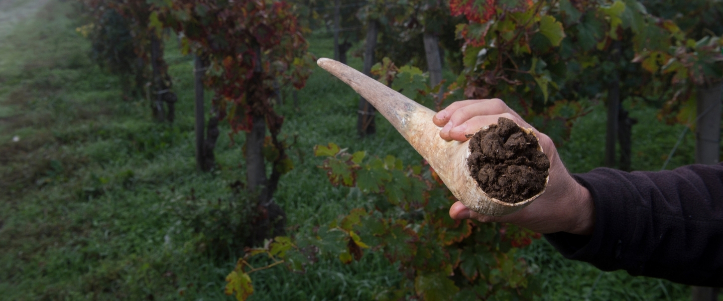 例如 Preparation 500 便善用牛糞(Cow Manure),把牛糞放入牛角中並埋入泥土中過冬發酵至春天,每次使用時只需取出非常少的量並用水稀釋,然後攪拌約一小時將它們激活(Dynamisation 動力攪拌),接著就可以噴灑在土壤中和葡萄藤上藉此增強土壤中的微生物活性令根部生長更活躍,可扎根更深。