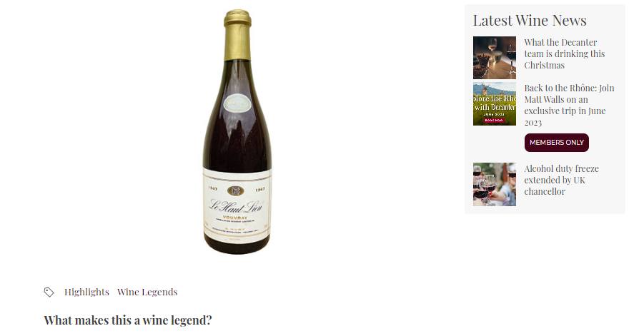 在2005年Decanter就曾經列出100 Greatest Wines, 第6位就是出自S.A. Huet的Vouvray 1947,足以證明Chenin Blanc的質素和地位!