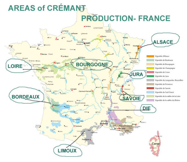 而這些Cremant AOC中,可以使用香檳區的葡萄品種 (Chardonnay、Pinot Noir及Point Meunier) 去釀造的有Cremant d’ Alsace、Bourgogne、Jura、Loire (Chardonnay與 Pinot Noir),Limoux (只有Chardonnay)。