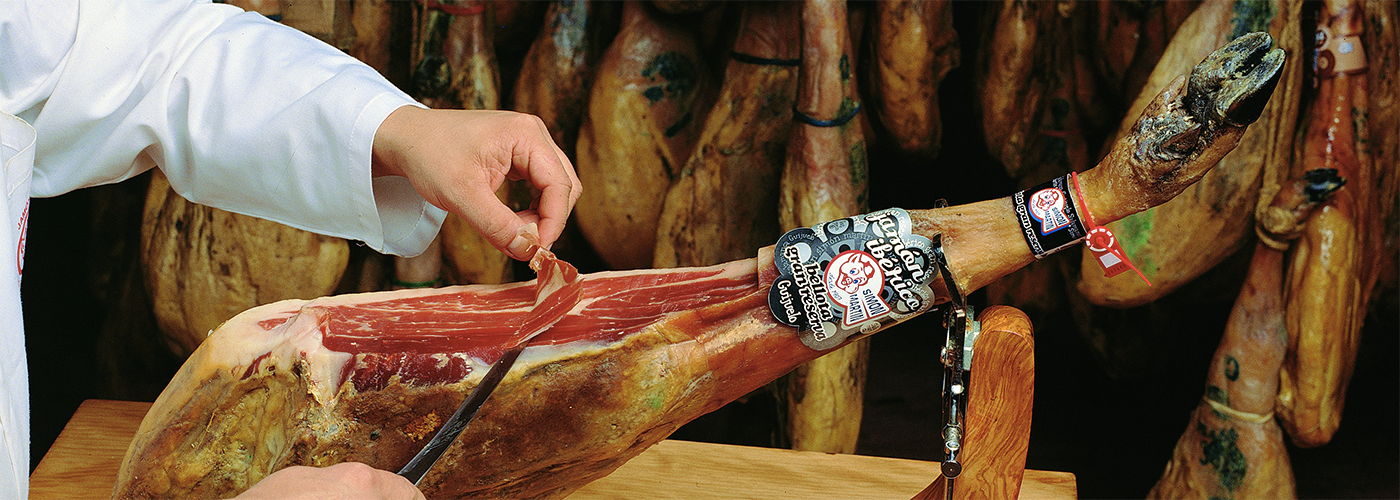 這裏出產的火腿以高質著稱,火腿形狀特別細長而且帶有灰白色的邊界