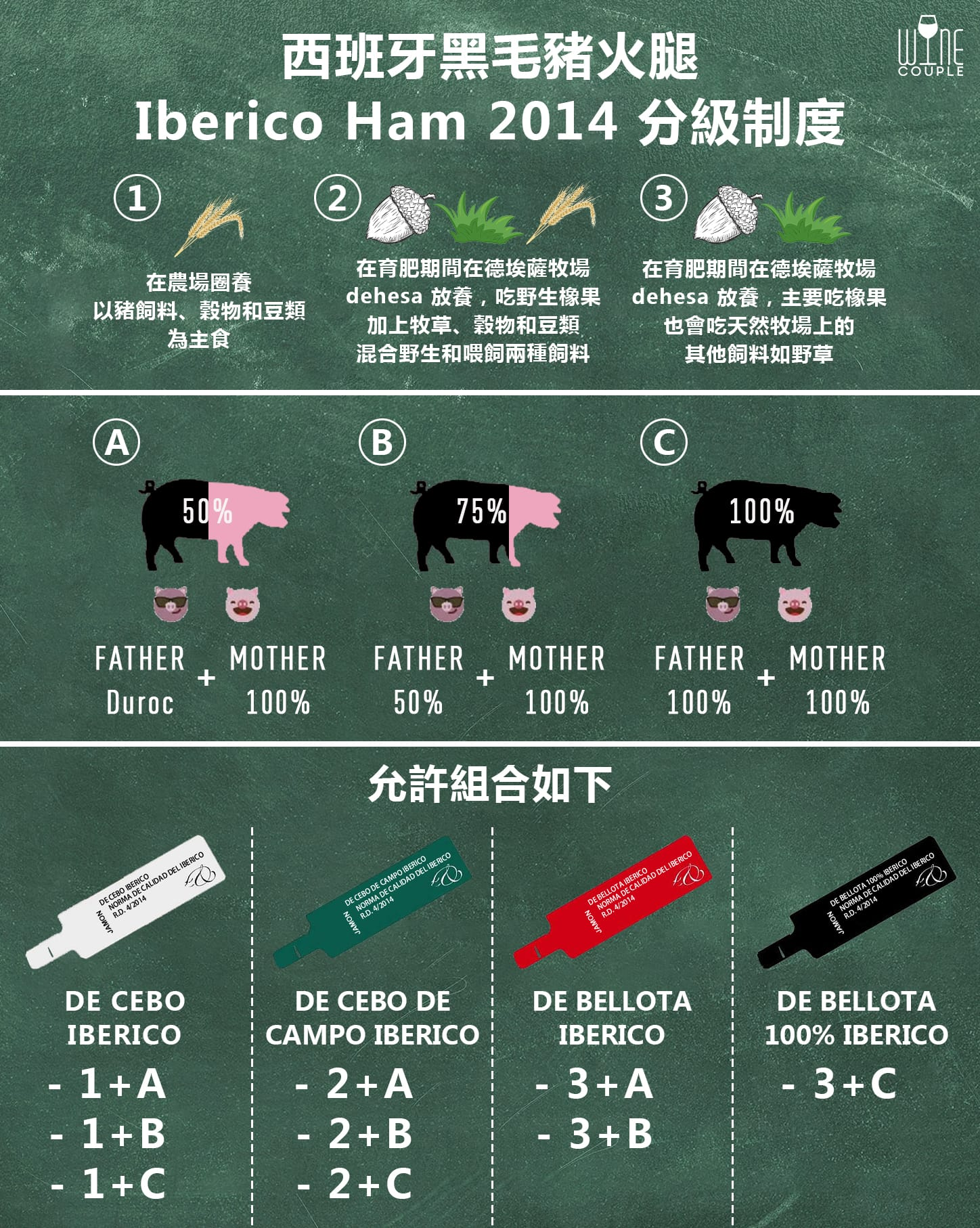 混種是因為純種 Iberico 量少高質,而母親都必須為 100% 純種 Iberico,更有族譜嚴格紀錄。