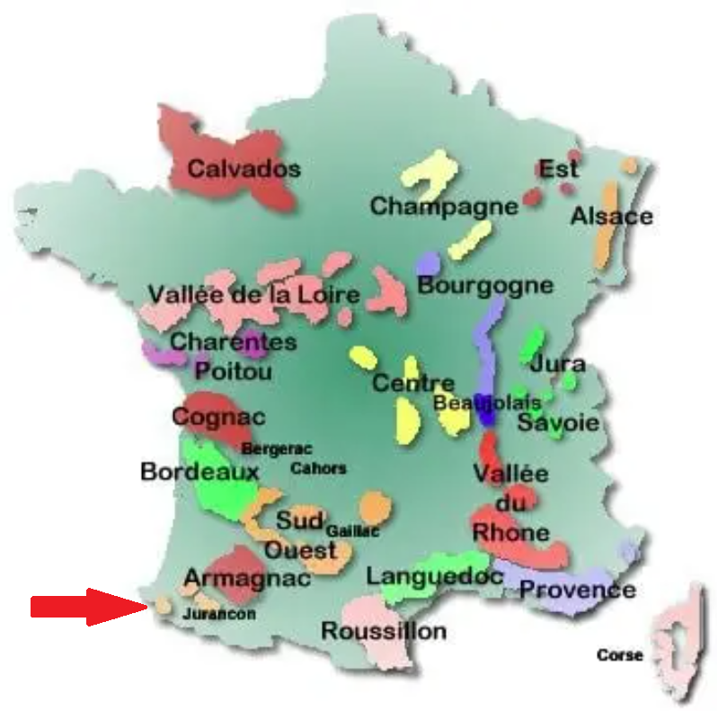 Jurancon位於法國西南部Pyrenees(庇里牛斯山)嘅山腳,平均高300米,主要出產甜白酒同dry(唔甜)白,有70%產量都係medium sweet到sweet咁上下甜度嘅甜酒(當然睇價位&酒莊風格),30%就係dry白,基本上都係白酒,係白葡萄Petit Manseng同Gros Manseng嘅主場~都有少部份其他原生白葡萄:Courbu Blanc, Petit Courbu, Camaralet de Lasseube, Lauzet。
