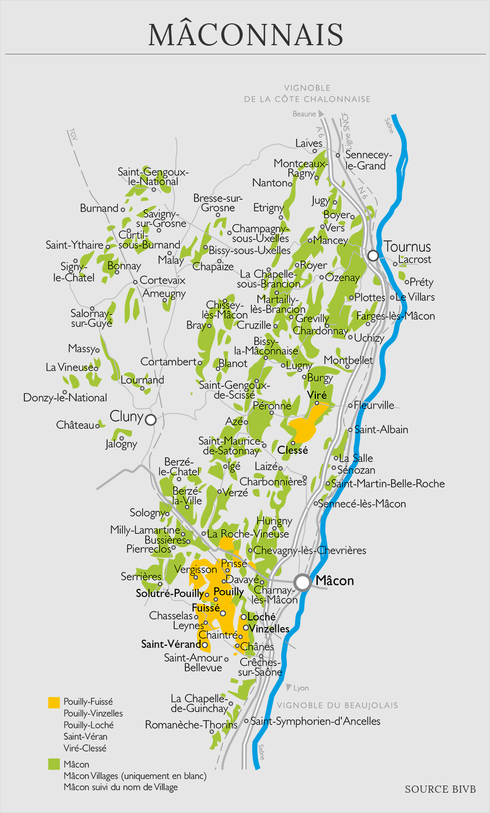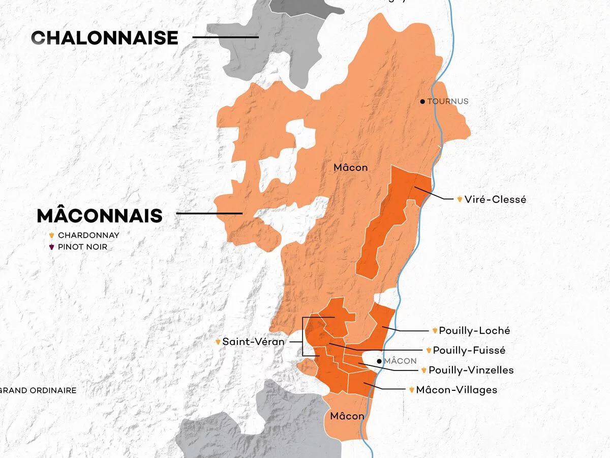AOC 在 1937 年成立,整個 Macon 接近 90% 都是出產白酒,種植面積超過 3800 公頃,而任何 Macon 白酒都是用 Chardonnay 釀成,用 Aligote 的只能標上 Bourgogne Aligote。