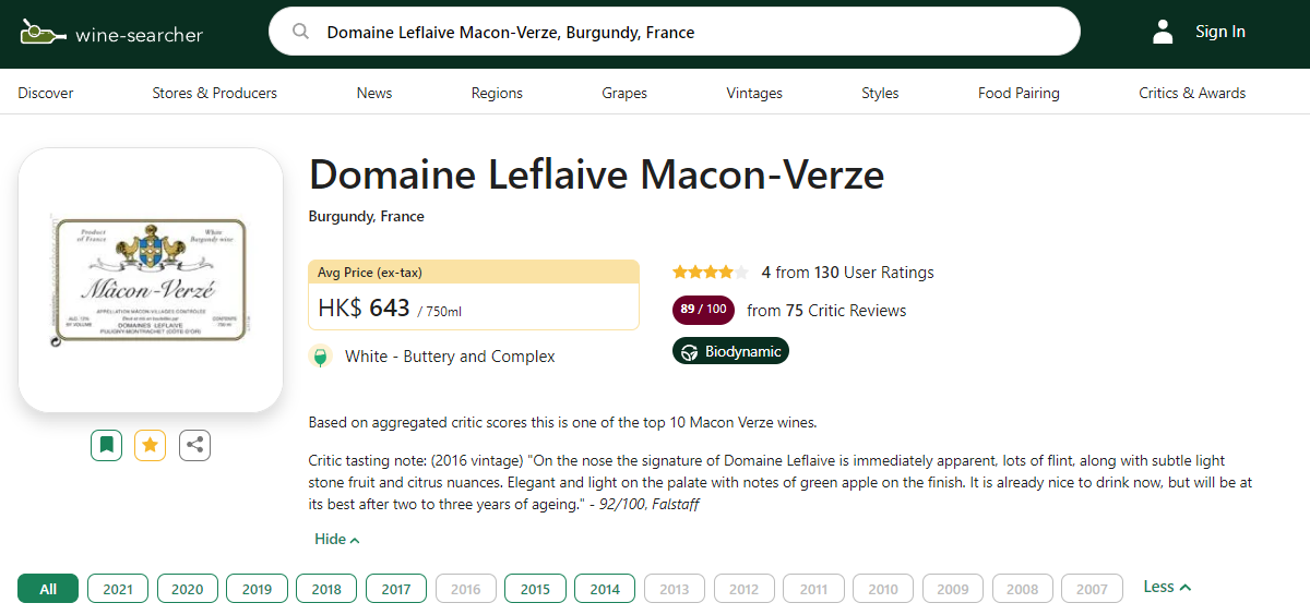 Montrachet 頂級名莊 Domaine Anne Claude Leflaive 也在 2004 年在 Verze 收購了 9 公頃的葡萄園,Leflavire Macon-Verze 的價錢雖然更比他家的名園相宜但已經比一般 Cote d'Or 村級酒款更高價,證明 Macon 酒款也可以有相當的質素。