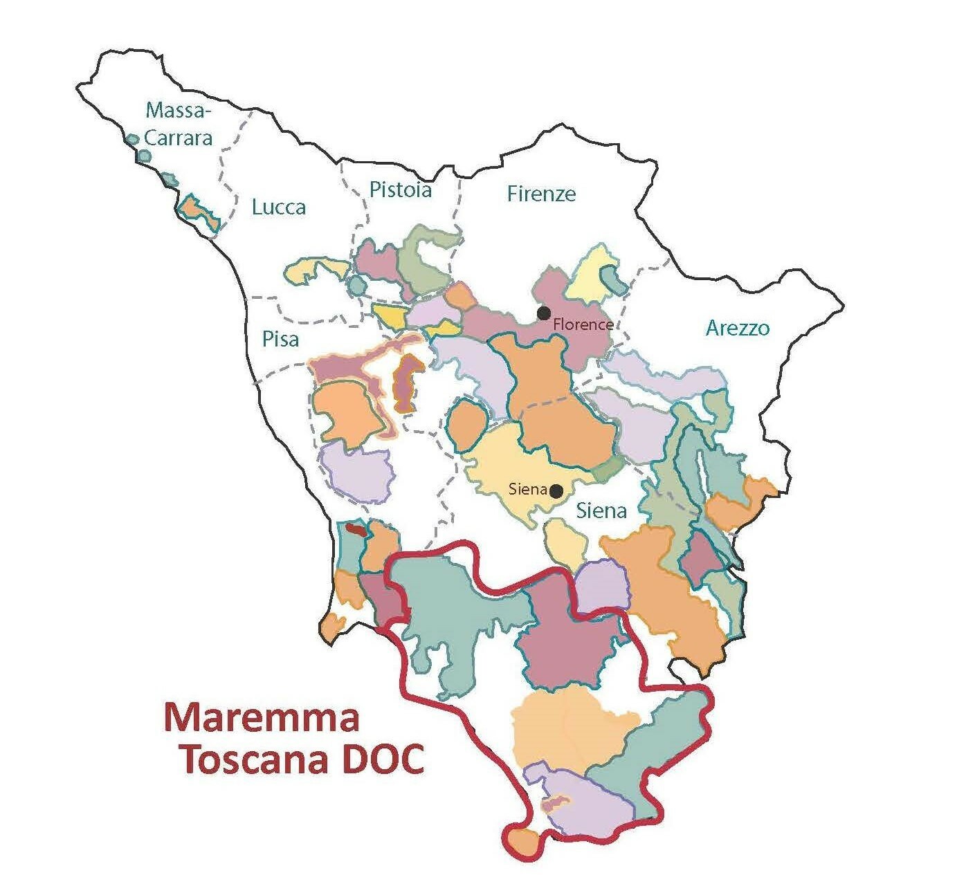 位於義大利托斯卡納大區西南部的格羅塞托省(Grosseto),北鄰著名的寶格利(Bolgheri DOC)法定產區,以出產高品質的超級托斯卡納葡萄酒而聞名世界。