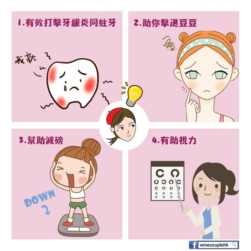 1️⃣️ 有效打擊牙齦炎同蛀牙 👉 紅酒內的多酚成份被証實可減低牙菌斑,牙洞和牙齦疾菌的形成 ,間接有效於牙齒健康 😬