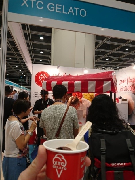 講得係restaurant and bar, 除咗有酒飲,當然有野食. 一眾的食物供應商展示佢地嘅產品。有us prime 牛即煎即試食,xtc gelato意大利雪糕任試單球。當然供應商都係畀業界朋友試的。另有一條行係日本食材,有一個區係海鮮。仲有咖啡拉花比賽。
