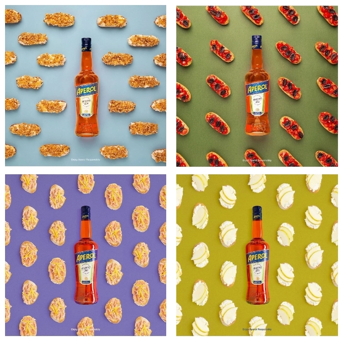 喝Aperol Spritz搭配什麼食物?官方Instagram提供的答案是“Cicchetti”,即義大利各色風味小食,類似finger food。無論是一小碟醃橄欖或是Mozzarella水牛乳酪,都適合就著品嘗。不過既然Aperol Spritz是一款輕鬆沒有門檻的雞尾酒,清爽的口感其實搭配什麼都可以。