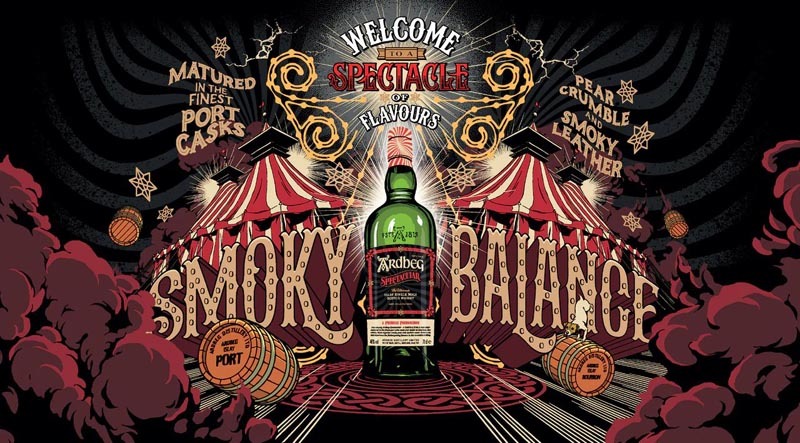 2024年Ardbeg Day的主題是《黑暗馬戲團》,同時雅柏也獻上迄今獨具特色的實驗威士忌一「雅柏雲巔」(Ardbeg Spectacular)。這款怪咖威士忌是雅柏首次嘗試將威士忌透過波特酒桶陳年後,再與經典波本酒桶的酒液揉合混釀,創造出一款具有泥煤風味且平衡的巔峰之作,有如一場黑暗馬戲團演出,帶著各式奇特的味道和香氣現身,可說是邪惡甜美與煙熏泥煤的美妙結合!