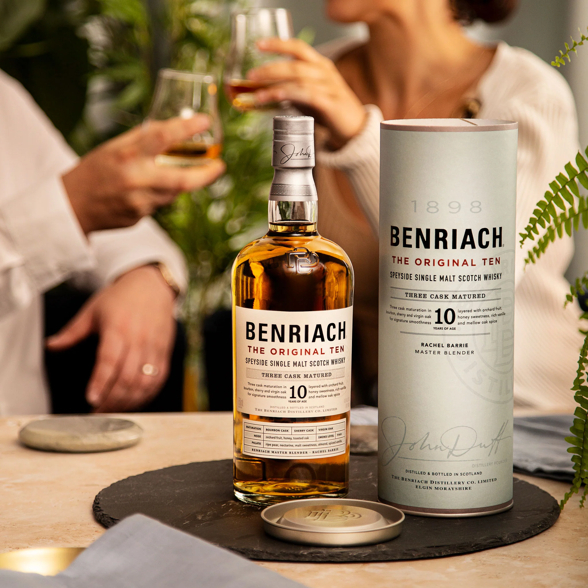 The Original Ten is the flagship expression of Benriach Speyside single malt. Matured in sherry casks, bourbon barrels and virgin oak casks, this expression is married together under the expert care of Master Blender, Rachel Barrie. Inspired by the very first single malt released by Benriach in 1994, this 10-year-old has a smooth and multi-layered profile that is the perfect introduction to the Benriach range.