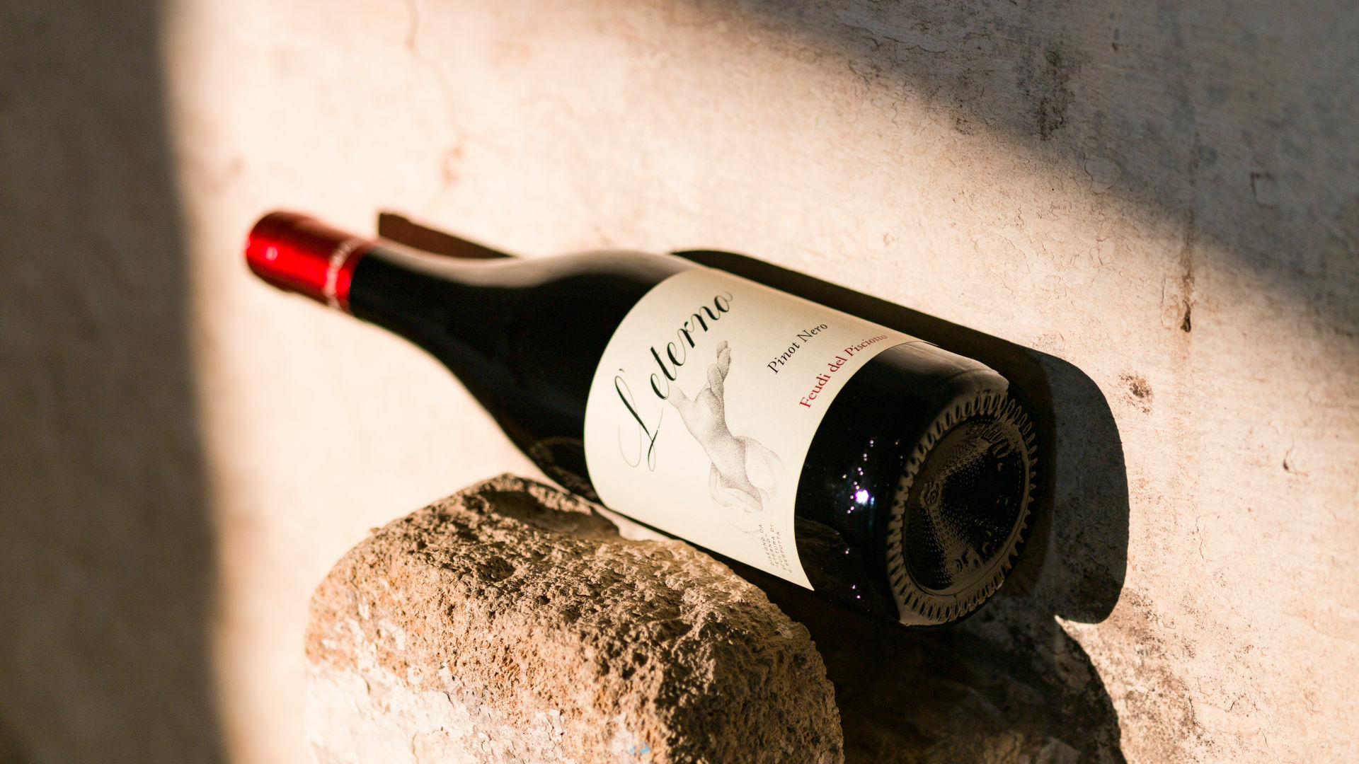“L'Eterno”在傑出的釀酒師Giacomo Tachis 的建議下,由100% 黑比諾葡萄釀製而成。 Tachis很熟悉這款高貴的葡萄藤,知道它在西西里島很難種植,但是以後在島上,尤其在費碧酒莊裡的發展潛力和前景將會令人驚嘆。 此酒具有強烈的勃根地風格,實在,但同時又非常精緻和高貴。 酒標里手的圖案來自Serpotta大師創作的雕塑《Eterno》(永恆)。 費碧酒莊邀請了國際頂級時尚設計師來設計酒標和其他葡萄酒,比賽所得資金用來資助這座古老雕塑的修復。