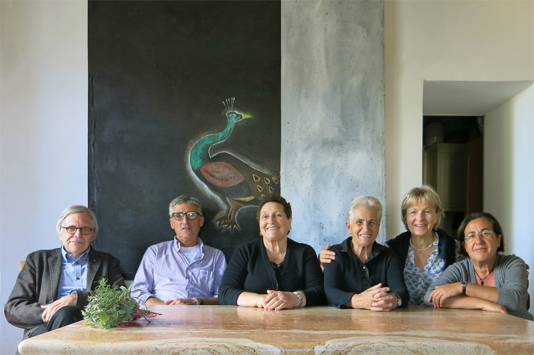 The artwork on the label of our wines is called “Elvira with a hat” created by Harvard economist and painter Richard M. Goodwin. Richard was a frequent guest at the Osteria Le Logge and a dear friend of Gianni and Laura. Many times he observed and admired Elvira, Gianni’s mother, who at that time was responsible for the kitchen of the Logge and as a Muse inspired her portrait. Even today, “Elvira with a hat” is hanging at the entrance of the Osteria Le Logge.