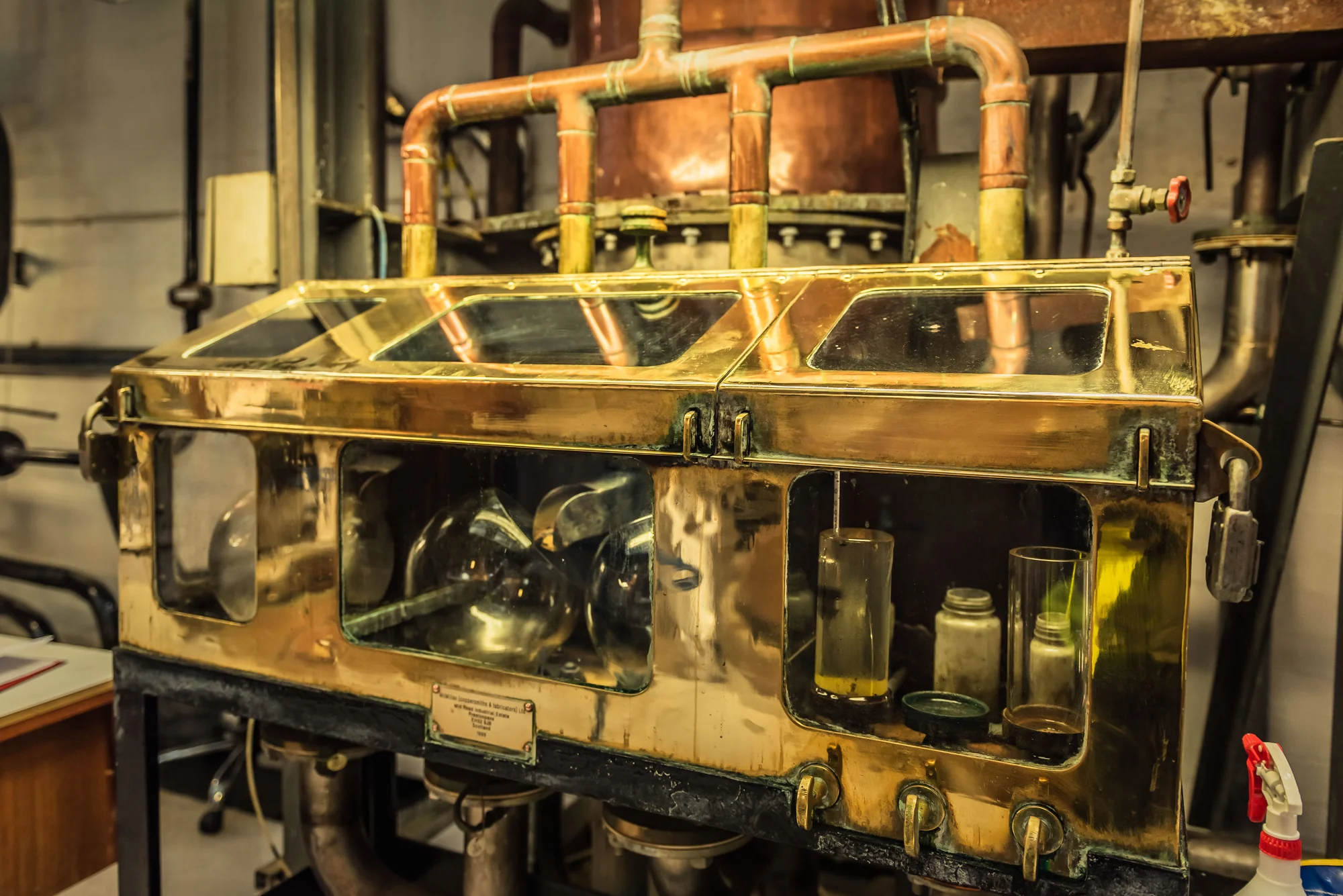 酒廠還有8個蒸餾機用於生產麥芽威士忌,其中2個為傳統的銅製蒸餾機,另外6個為經過調整的羅門式蒸餾機(Lomond Still)。羅門蒸餾機擁有獨特的圓柱式的瓶頸,瓶頸處裝有一個托盤,能夠直接與冷凝的酒精氣體接觸。此裝置提高了生產效率,可以蒸餾出酒精濃度為90%的酒液,而常見的蒸餾機產出的酒液酒精濃度為70%。而且,這種類型的蒸餾機還可以賦予酒精濃度不同的酒液不同的風味,這是一般的連續式蒸餾機無法達到的效果。同時,蒸餾廠還有用於生產穀物威士忌的柱式蒸餾機(Column Still)。