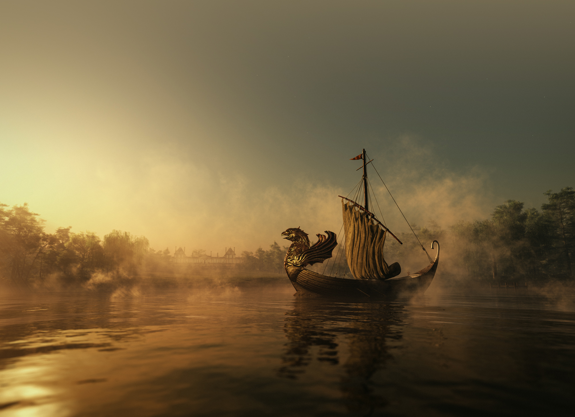 據說,正是因為德佩農公爵,酒莊才改名為龍船莊園(Chateau Beychevelle)。酒莊的位置臨近吉倫特河(Gironde),後花園一直向河邊延伸,可以看到往來的船隻。往來船隻上的人們知道海軍總司令就住在這裏,為了表示對他的臣服和敬仰,都會自覺地向他敬禮。但由於河面太寬,用手敬禮未必能被看見,因此,他們後來以斜下半帆的方式以示敬禮。久而久之,這便成為當地不成文的約定。 船員們經過這裏時都會大聲喊“下半帆(Baisse-Voile)”。總司令聽見後明白其意,非常喜歡,決定以一艘下著半帆的龍船作為酒莊的標誌。 至此,首部飾有獅身鷲首怪獸(希神)的龍船成為了酒窖的守護神,並以象音單詞“Beychevelle”代表“Baisse-Voile”作為酒莊名字。