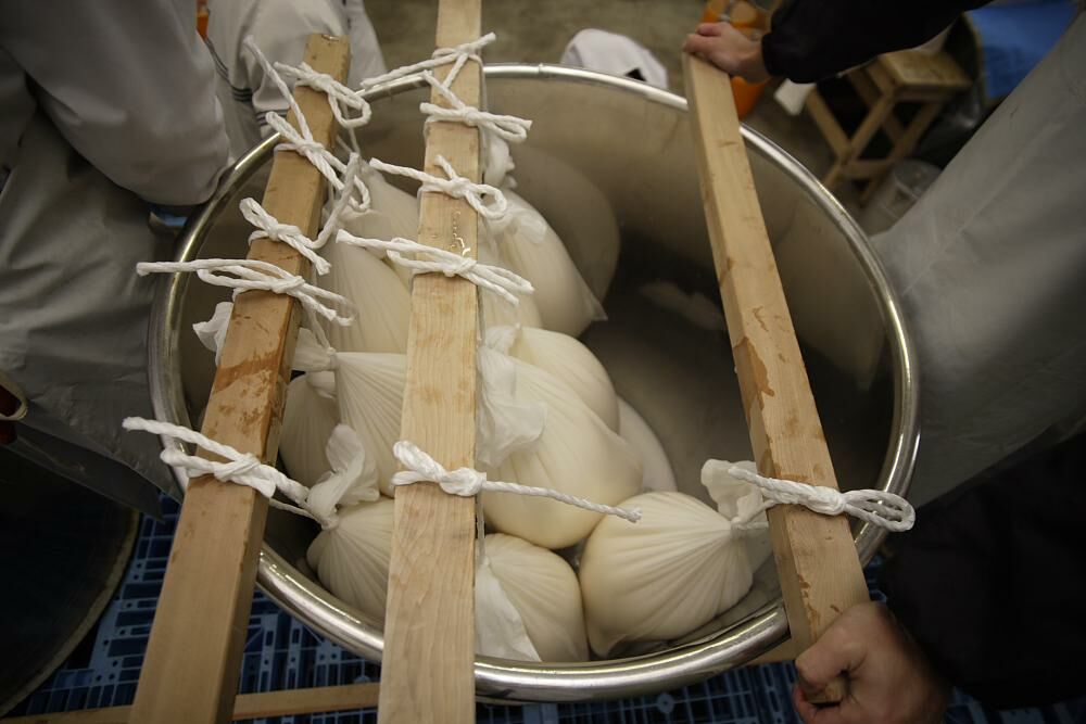 此酒用上斗瓶囲技術採集酒液,斗瓶囲的意思是將裝滿醪的棉布袋吊起,酒液靠自然重力榨取,在相對隔絕氧氣的低溫環境下,用斗瓶收集。可想而知,出酒率極低。這樣的費時費力,每一瓶也很珍貴,經歷了漫長等待的酒體,比起一般壓榨式收集酒液更為雅致、豐富與純淨。