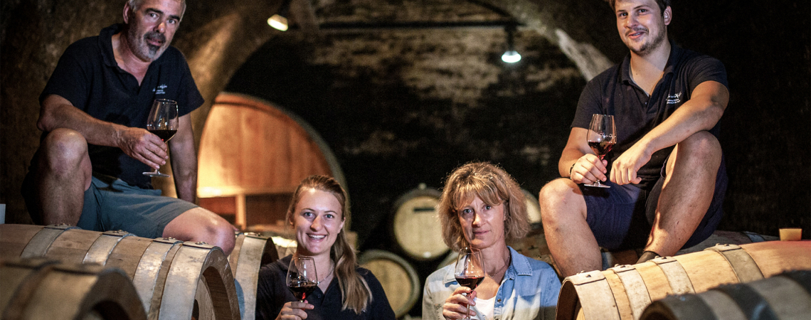 酒莊起源可追溯至1895年,最初是 Élie Dussaud 建立的狩獵保護區,1936年因拒絕政府勘測而被排除在 Chateauneuf du Pape 教皇新堡法定產區之外。 1955年,Paul Pouizin 購得這片土地並開始種植葡萄,其子 Claude Pouizin 在1970年代正式裝瓶銷售。如今,酒莊由克勞迪之女 Sylvie Vacheron 及其子女Marilou和Axel共同管理,釀酒團隊由 Bruno Gaspard 和顧問 Philippe Cambie 領銜,延續著家族五代人的耕耘。