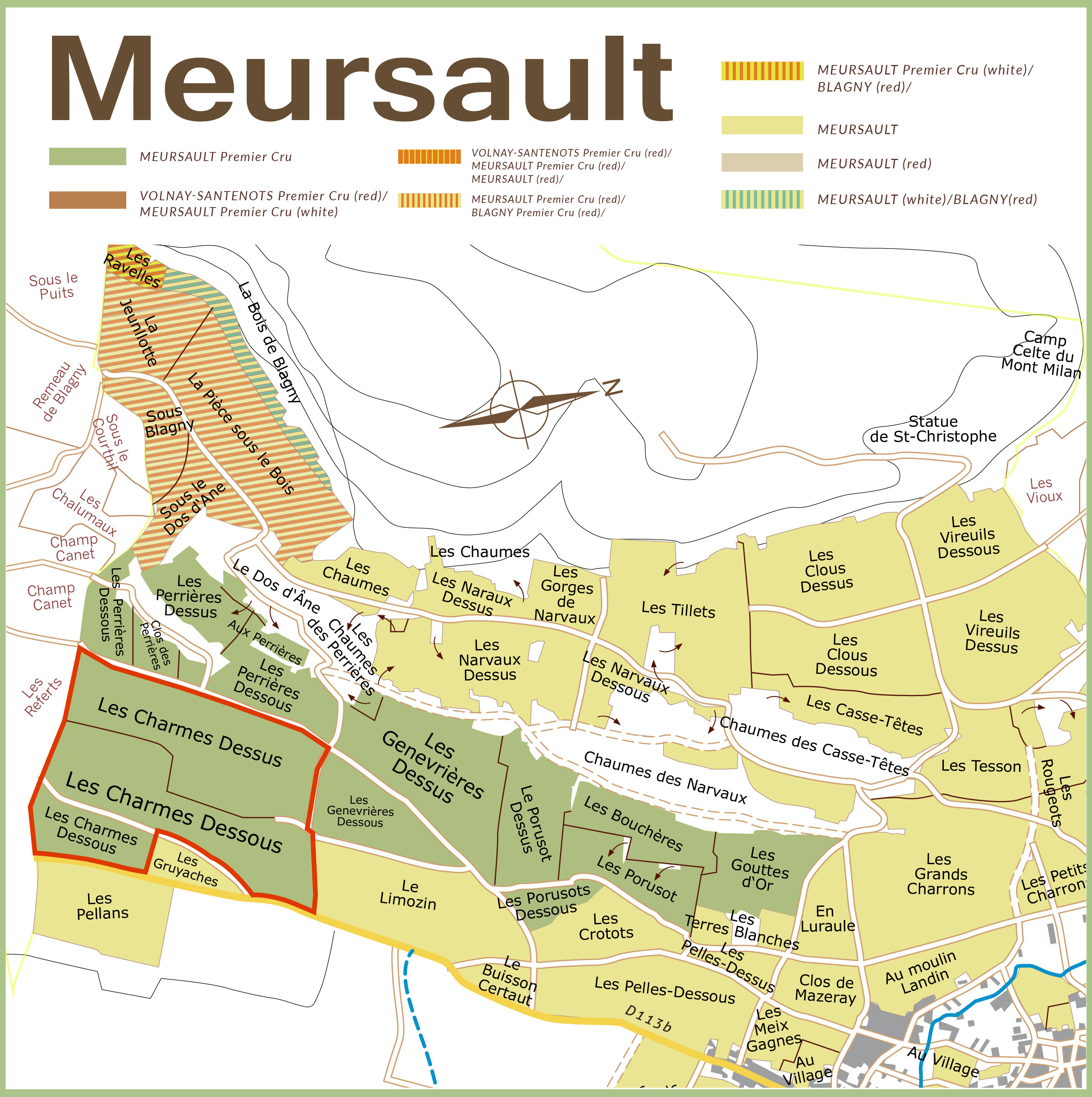 Meursault村在葡萄酒界享有悠久的聲譽,而Les Charmes作為當地最大和最重要的1er Cru之一,歷史上一直是Meursault的支柱。葡萄園被分成數個小塊,早在19世紀就開始出產高品質的白葡萄酒,並在全球市場中獲得廣泛認可。雖然不像特級園(Grand Cru)那樣享有絕對的威望,但Les Charmes的名聲和品質已使其與其他特級園相媲美。