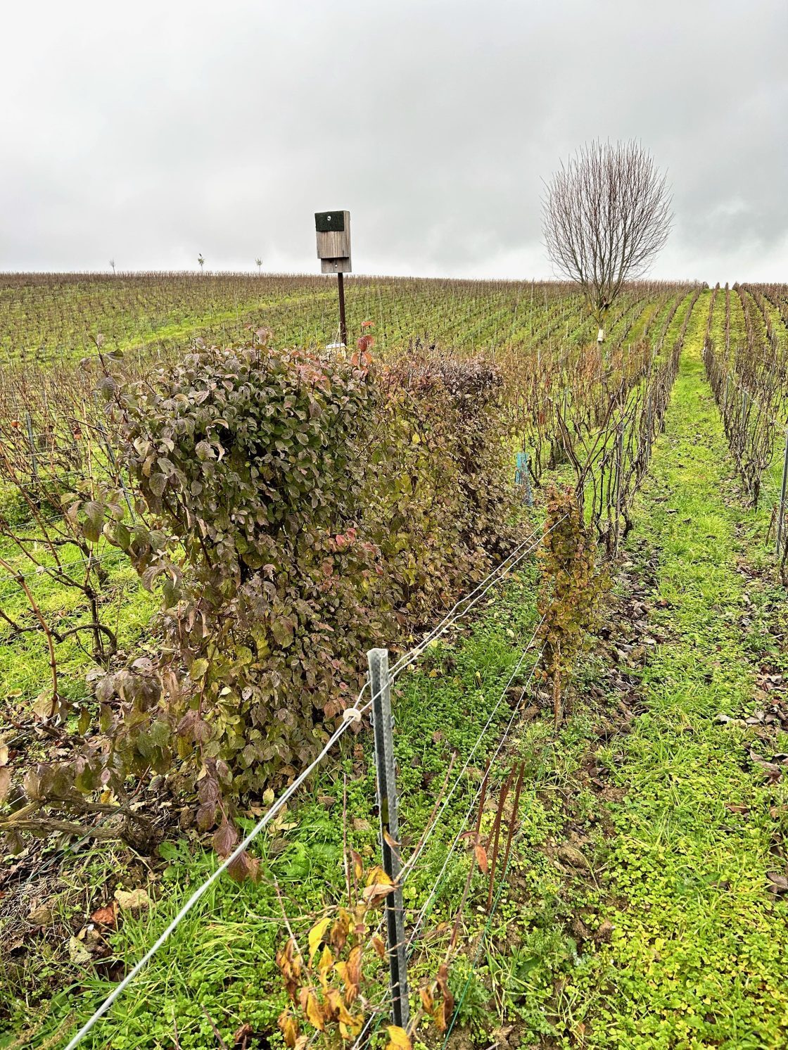 Sébastien的葡萄園中,多樣化的生態系尤其重要。四季都有數十種的植物混合生長在田中。葡萄行間的一顆櫻桃樹,更是未來提供鳥類棲息,以便透過自然解決害蟲的一大幫手。