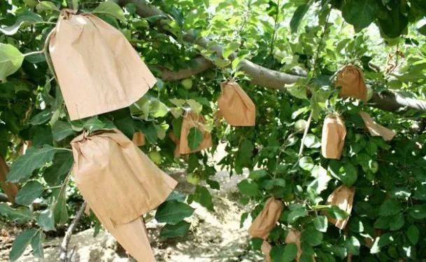 梨園的梨子用套袋包住,不僅可以有效的防控病蟲害,減少農藥殘留,還可防曬防裂,改善梨子的外觀品質。雖然套袋會使生產成本略有上升,但換來的是勞動力、農藥成本的下降和梨子的品質、價格的提升,要做好一支好的梨酒就係要從根本做起