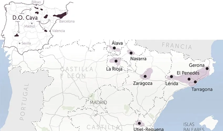 早期的 Cava 被稱為西班牙香檳,後來為了與法國香檳區分,才用 Cava 這個名字。Cava 與香檳一樣,只有白酒及粉紅酒,95% 的 Cava 產自加泰羅尼亞的 Penedès 產區,但西班牙的 Rioja 和 Valencia 部份地方亦可生產~